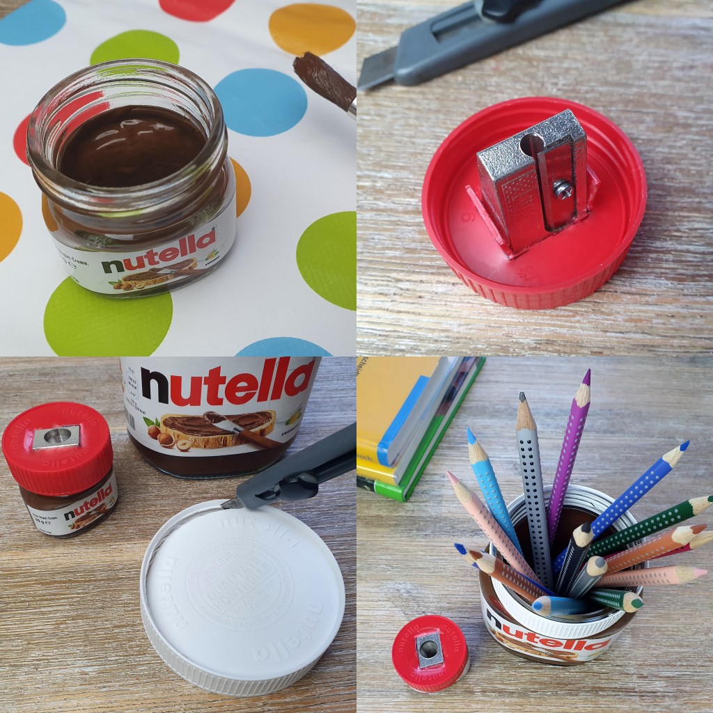 Stiftehalter und Anspitzer aus Nutellaglas basteln – DIY