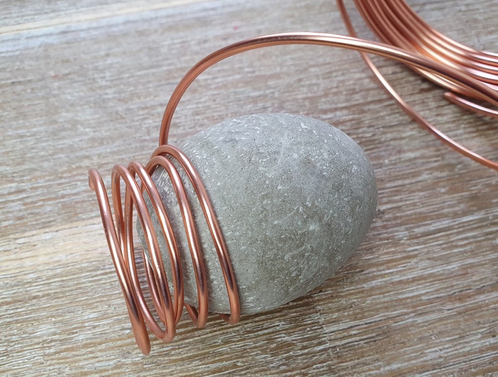 - Ihr nehmt das Ende des Drahtes und wickelt es 3 Mal beginnend im unteren Viertel um das Ei (Foto 1).