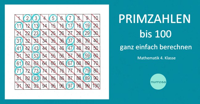 Wir zeigen dir heute die einfache Berechnung, mit der wir die Primzahlen bis 100 gelernt haben.