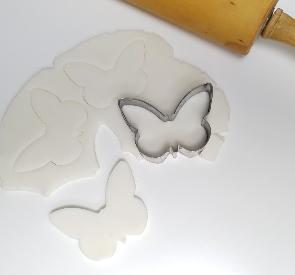 • Wenn du vor dem Ausstechen Frischhaltefolie auf die ausgerolllte Kaltporzellanmasse legst werden die Ränder deiner ausgestochenen Formen glatter.