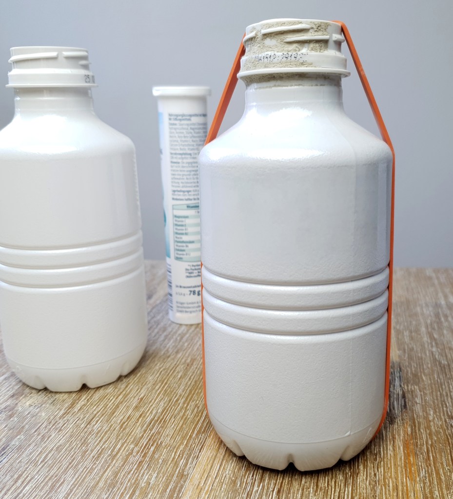 - 1 leeres Röhrchen von Brausetabletten (die kürzere Version; muss durch die Flaschenöffnung passen)