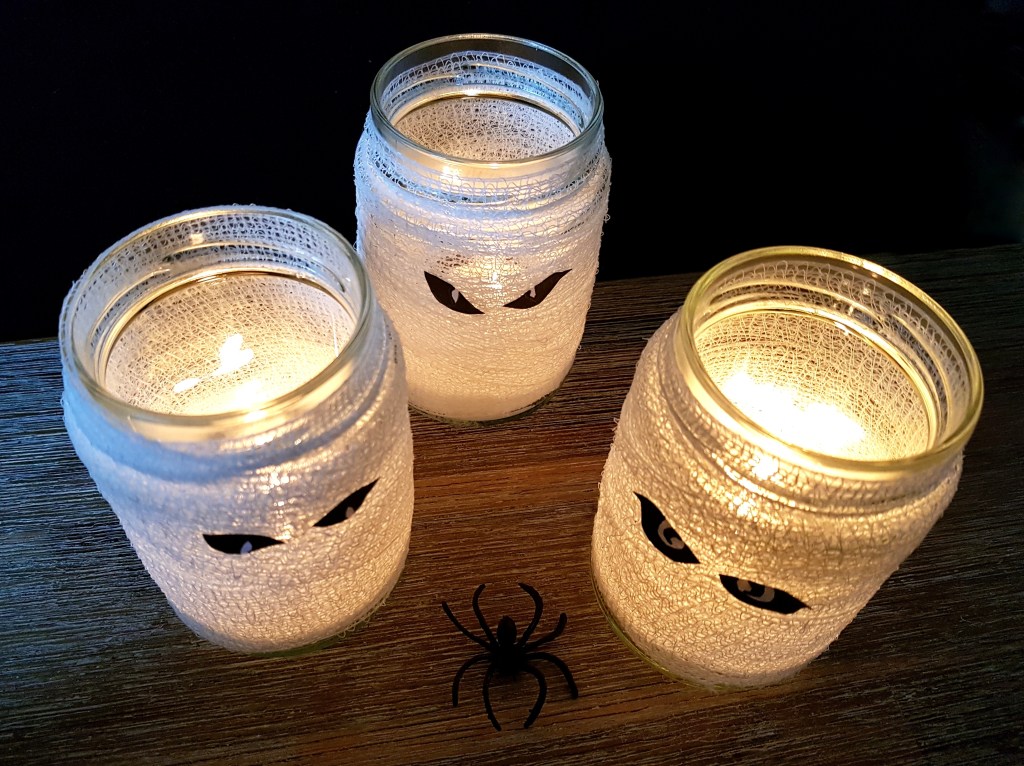 Bastelanleitung für Mumien Lichter aus Altglas: Mumien Lichter für Halloween basteln