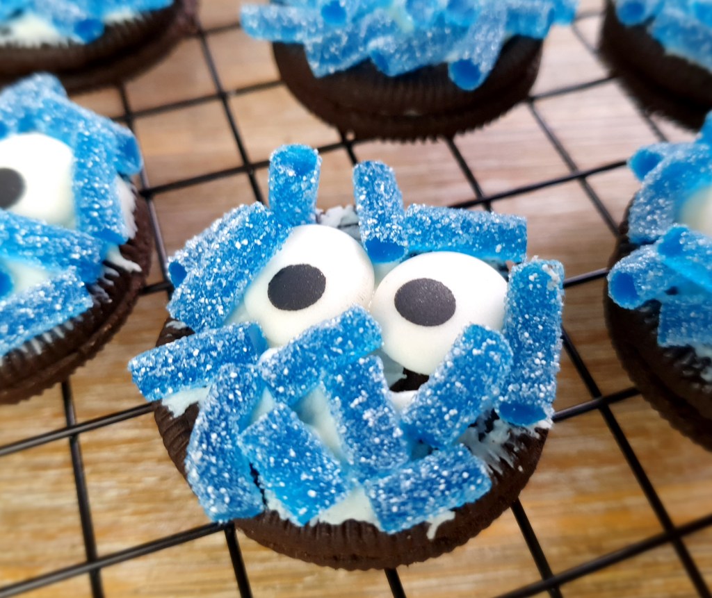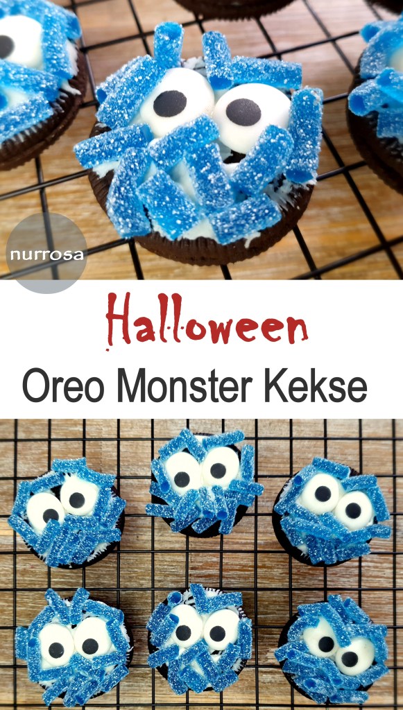 Die Oreo Monster Kekse sind ruckzuck gemacht, denn alles was du dazu brauchst, sind Oreo Kekse, farbige Fruchtgummischnüre, Zuckeraugen und und Zuckerguß.