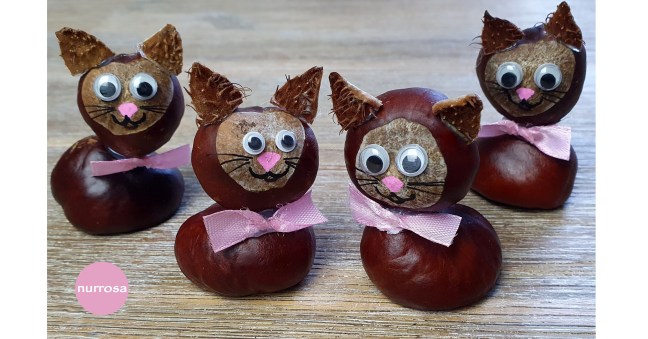 Aus Kastanien, Bucheckern und Heißkleber süße Katzen basteln