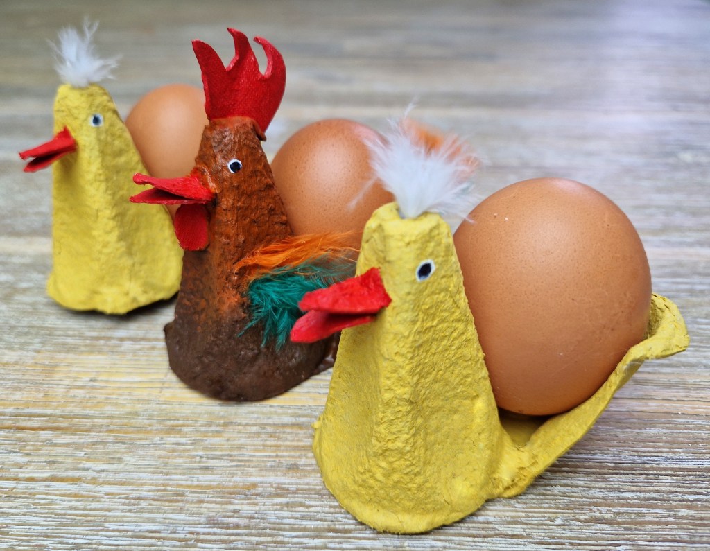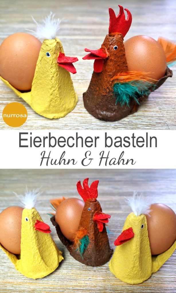 Eierbecher Huhn & Hahn aus Eierkarton basteln